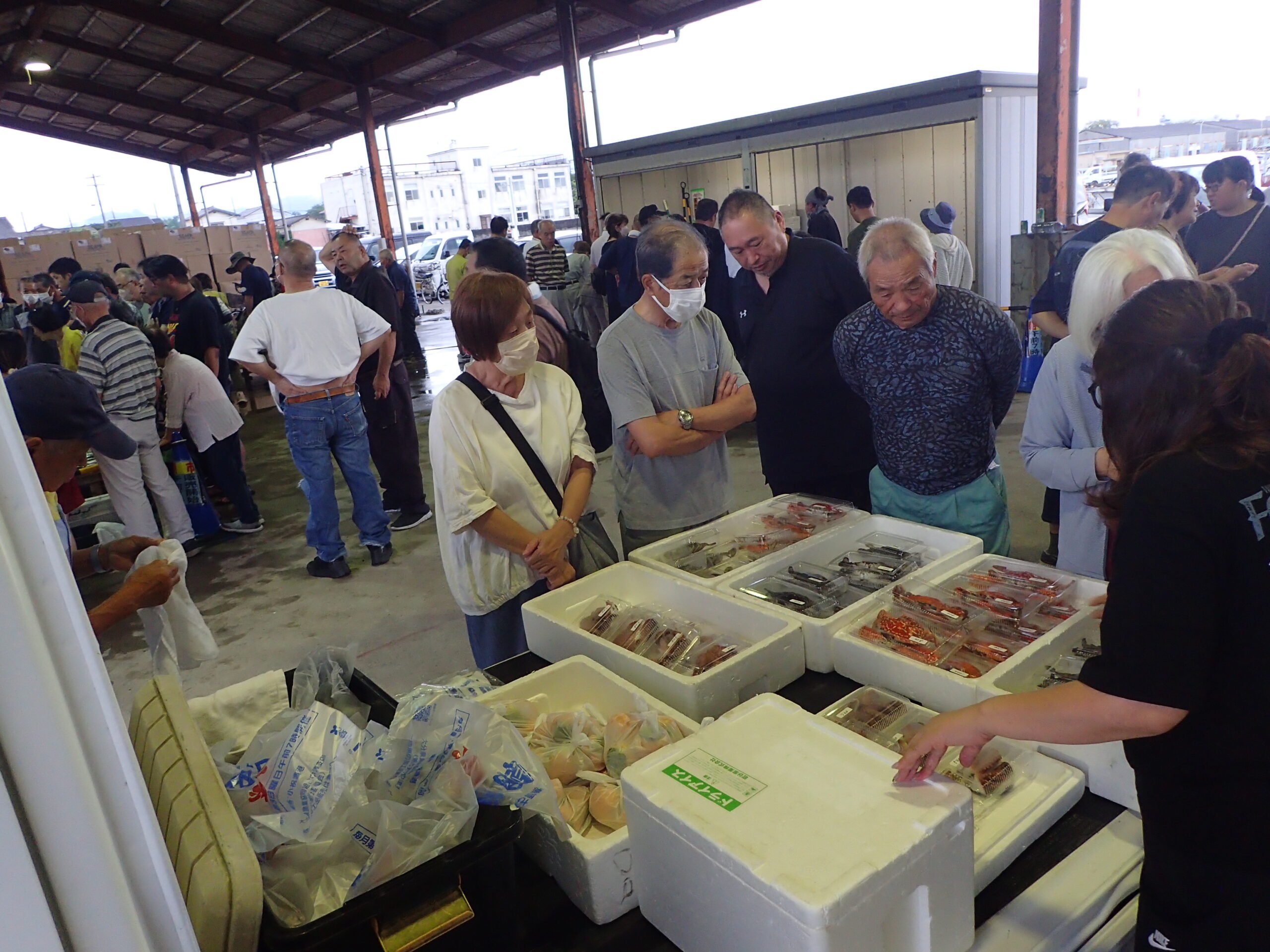 • 時期毎の漁模様で魚種や数量に偏りがあり、販売開始直後に売り切れる場合がありますので、お早めのご来場をおすすめ致します。(早いときには開始10分で売り切れになった時もあります。)
