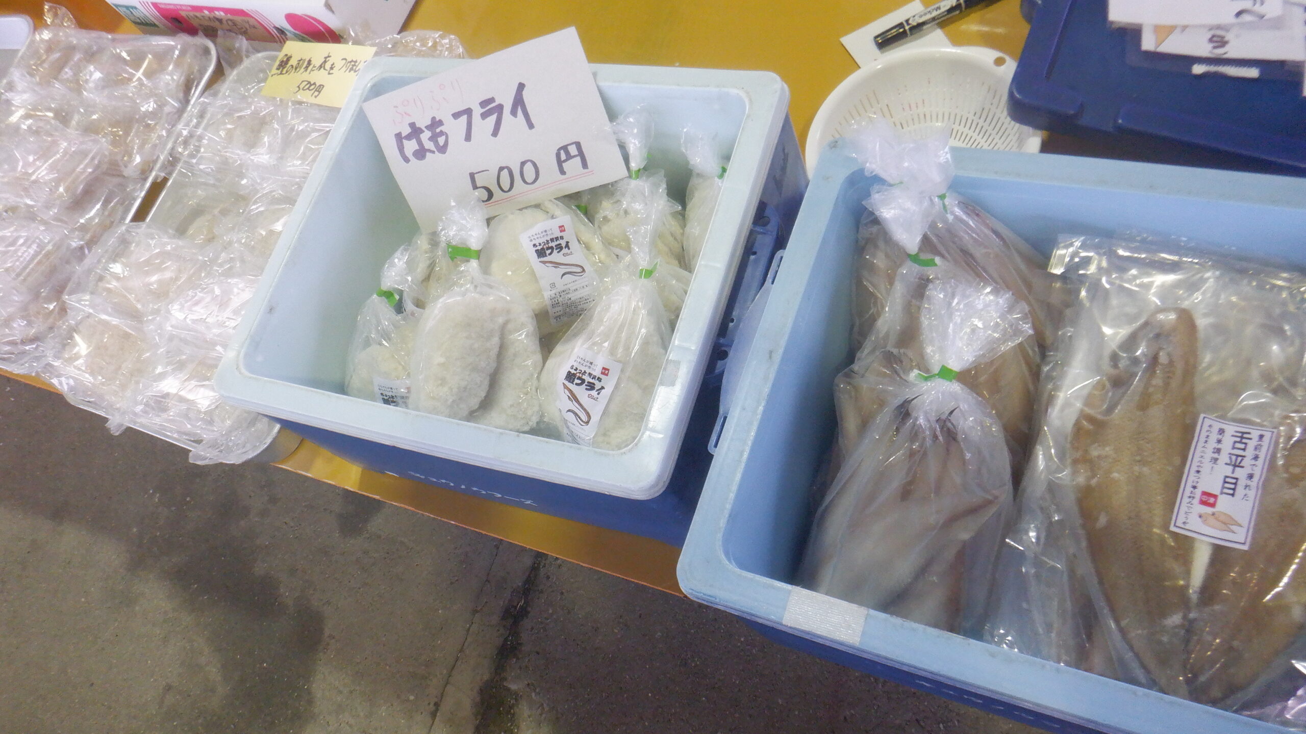 鮮魚等販売3軒、(冷凍)水産加工品の販売を予定しております。